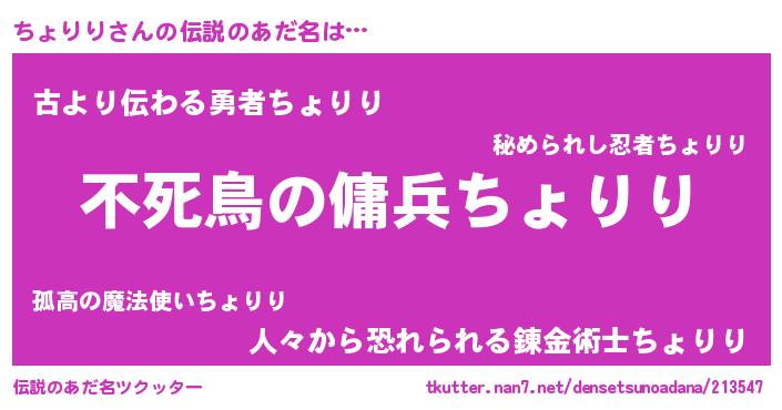 | 意味不明あだ名 | 『ペロリンちょりり』『永久保存ちょりり』 |