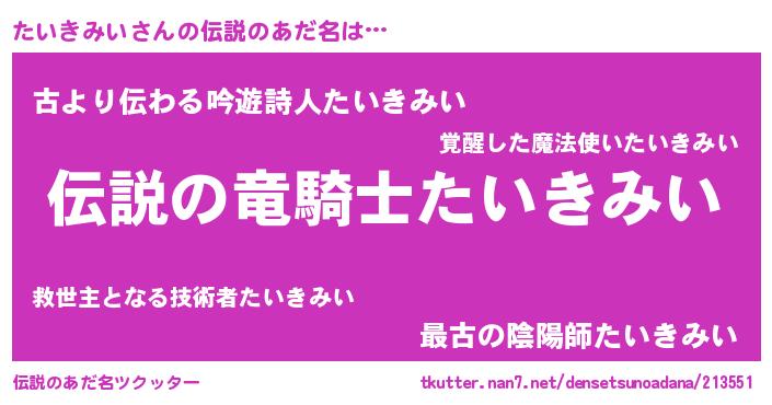 | ヒーロー風カッコイイあだ名 | 『スーパータイキミイ』『仮面タイダー』 |