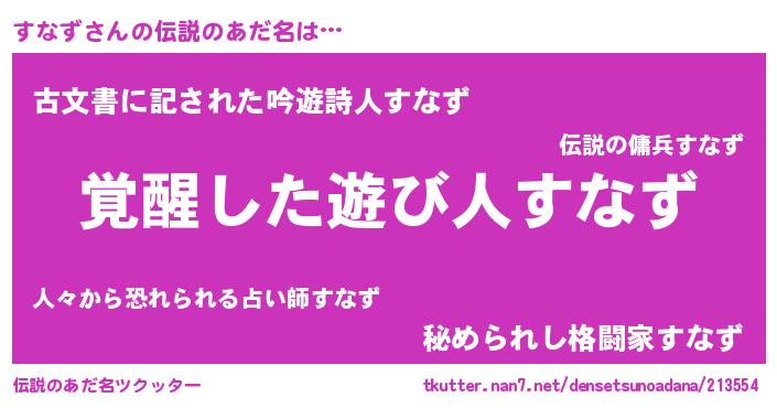| ヒーロー風カッコイイあだ名 | 『天弓騎士スナ』『ネオスナズ』 |