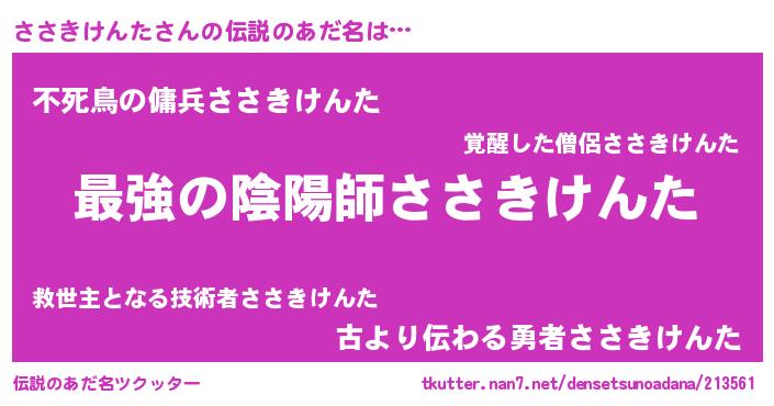 | 意味不明あだ名 | 『住所不定無職ささきけんた(85歳)』 |