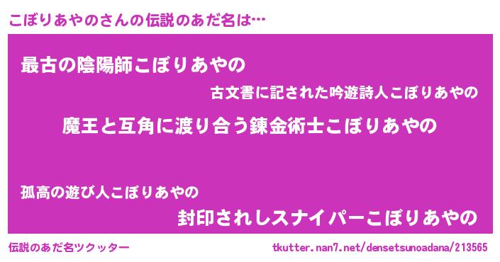 | 胡散臭い通販商品みたいなあだ名 | 『お金では代えられない隕石のかけら…その名も「こぼりあやの」』 |