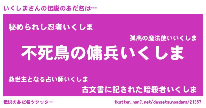 | ヒーロー風カッコイイあだ名 | 『ウルトラ戦士イクシマ』『仮面イクダー』 |