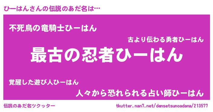 | 意味不明あだ名 | 『住所不定無職ひーはん(43歳)』 |