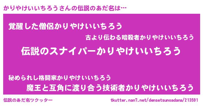 | 胡散臭い通販商品みたいなあだ名 | 『必ず成功する霊験あらたかなお札…その名も「かりやけいいちろう」』 |
