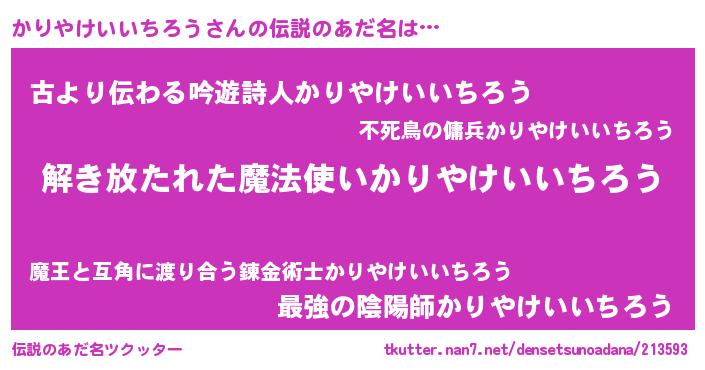 | 意味不明あだ名 | 『とにかく怪しいかりやけいいちろう』 |