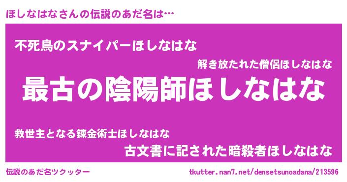 | 男性向けラノベタイトル風あだ名 | 『転生したらほしなはなだった件』 |