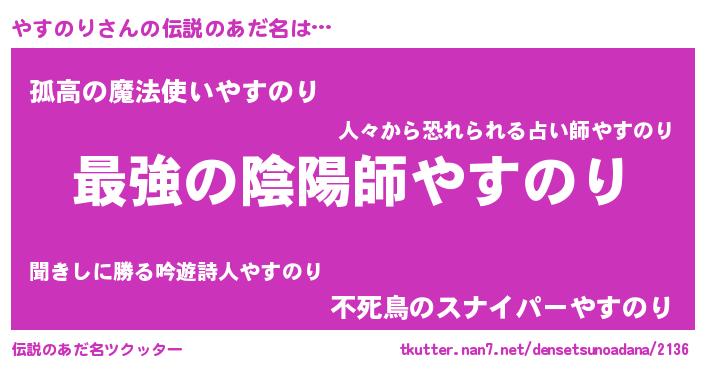 | 意味不明あだ名 | 『自称やすのり』『しいたけ科やすのり属』 |