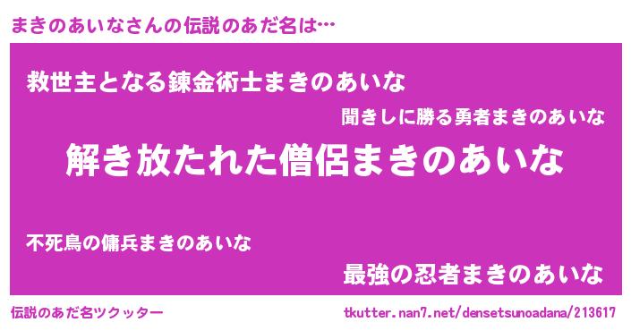 | 意味不明あだ名 | 『とにかく怪しいまきのあいな』 |