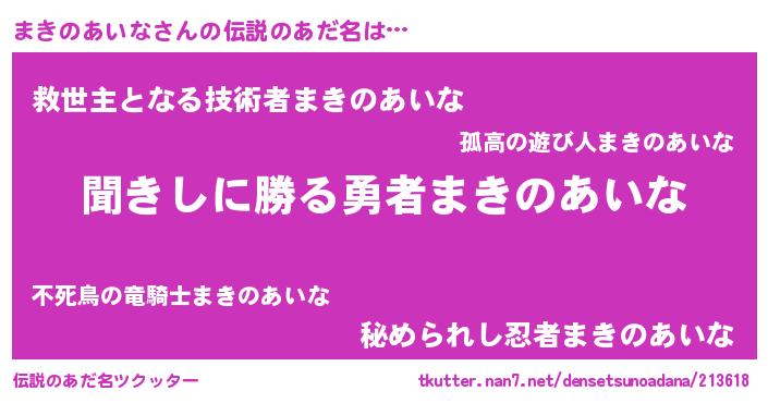 | ヒーロー風カッコイイあだ名 | 『仮面マキダー』『ネオマキノアイナ』 |