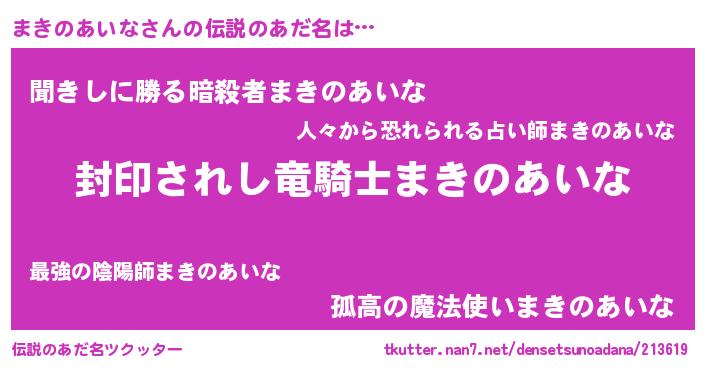 | ヒーロー風カッコイイあだ名 | 『スーパーマキノアイナ』『天弓騎士マキ』 |