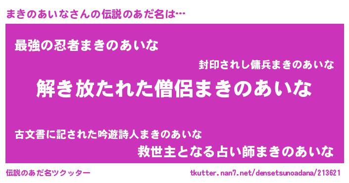 | 意味不明あだ名 | 『住所不定無職まきのあいな(65歳)』 |