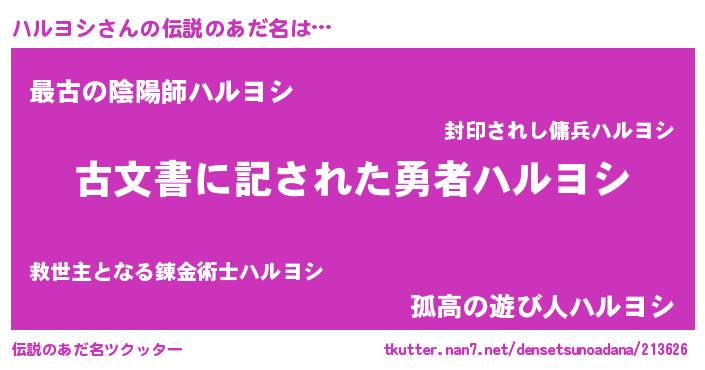 | ヘコむあだ名 | 『ハルヨシ(苦笑)』『豆乳』 |