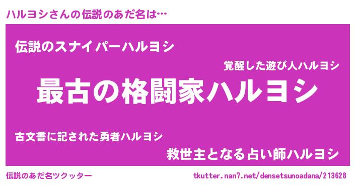 | ファンタジー風あだ名 | 『エターナルハルヨシー』『ゼハルトゥ』 |