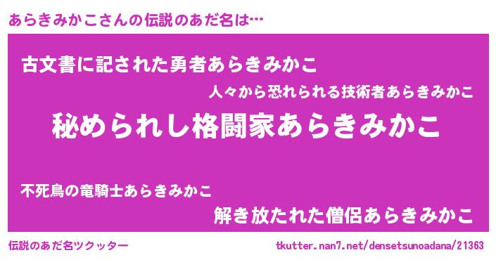 | ファンタジー風あだ名 | 『エターナルアラキミカコー』 |