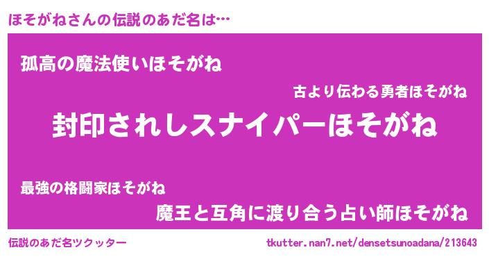 | ヘコむあだ名 | 『ほそもー』『ほそを』『なまこ酢』 |