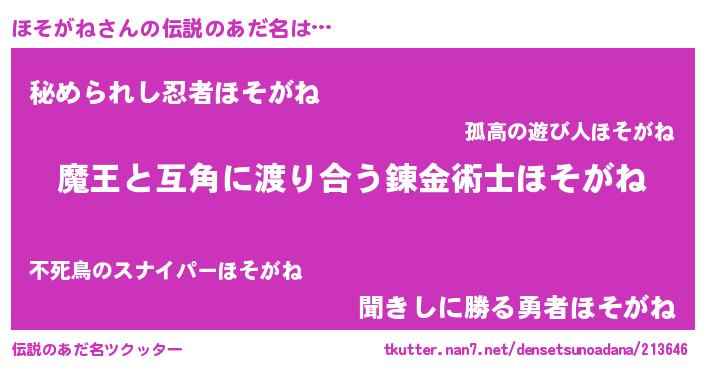 | 女子向けラノベタイトル風あだ名 | 『ほそがね恋絵巻』 |