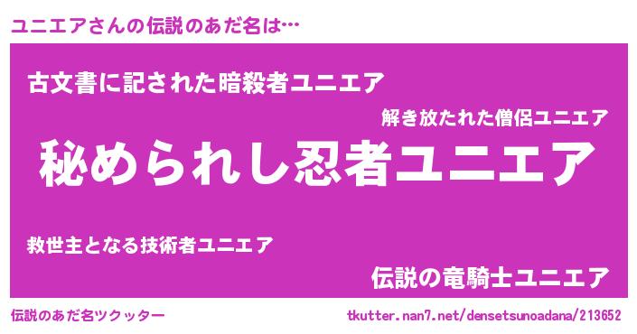 | 意味不明あだ名 | 『ユニエアフォーエバー』『自称ユニエア』 |