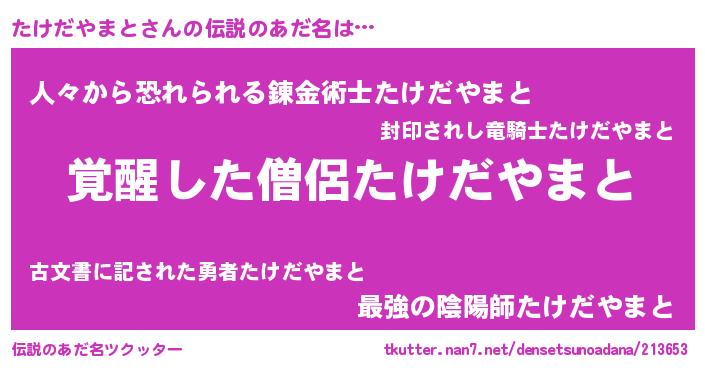 | 意味不明あだ名 | 『住所不定無職たけだやまと(14歳)』 |