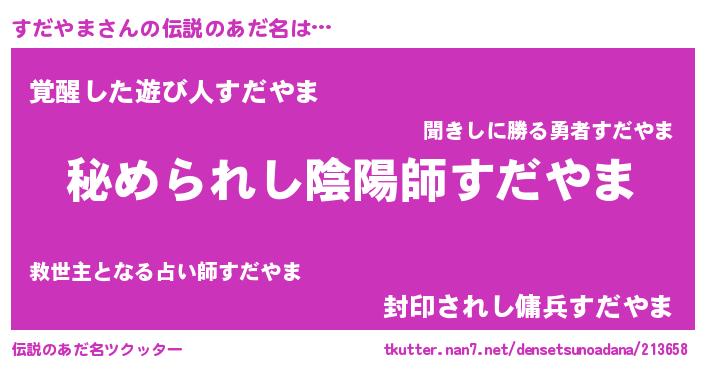 | ヒーロー風カッコイイあだ名 | 『超時空戦士スダヤマ』『仮面スダダー』 |