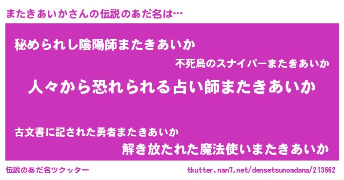 | 胡散臭い通販商品みたいなあだ名 | 『100人中100人が認めたイリジウム磁石…その名も「またきあいか」』 |