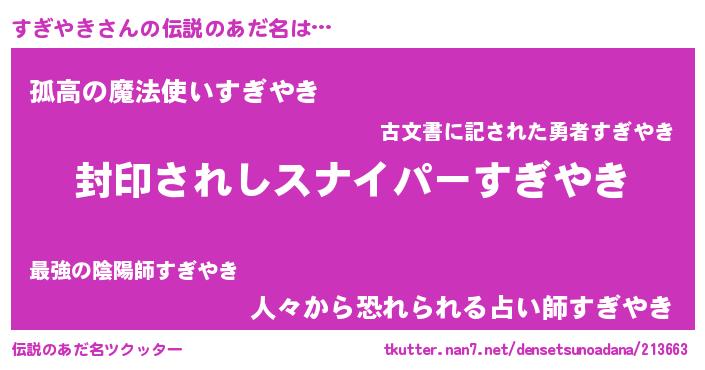 | 胡散臭い通販商品みたいなあだ名 | 『億万長者になれる霊験あらたかなお札…その名も「すぎやき」』 |