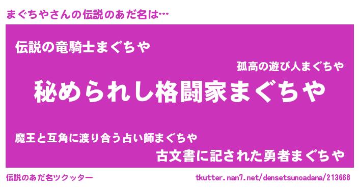 | 女子向けラノベタイトル風あだ名 | 『まぐちやなんてお断りですっ。』 |