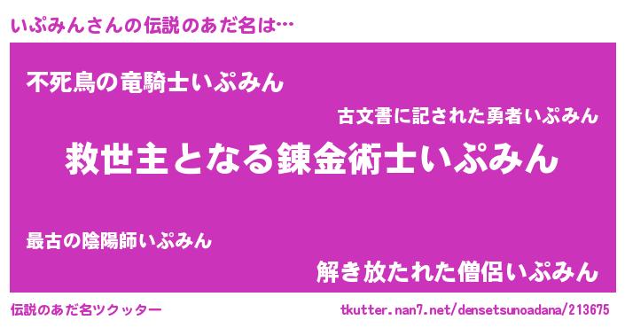 | 男性向けラノベタイトル風あだ名 | 『この素晴らしい世界にいぷみんを!』 |