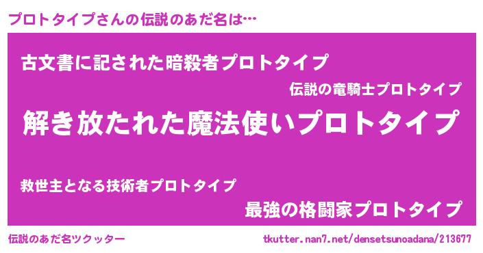 | 胡散臭い通販商品みたいなあだ名 | 『伝統あるサプリメント…その名も「プロトタイプ」』 |