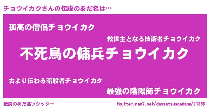 | ヒーロー風カッコイイあだ名 | 『スーパーチョウイカク』『暗黒騎士チョ』 |