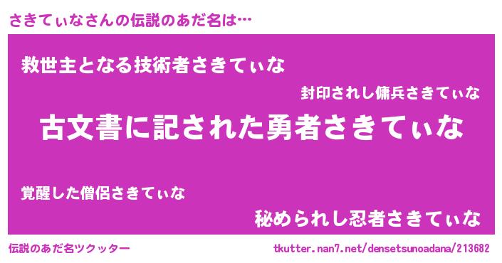 | ヒーロー風カッコイイあだ名 | 『ネオサキティナ』『仮面サキダー』 |
