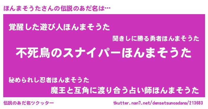 | 男性向けラノベタイトル風あだ名 | 『ホンマソウタアートオンライン』 |