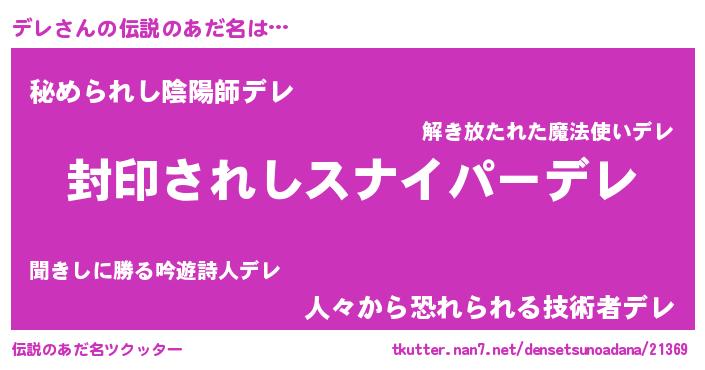 | ヒーロー風カッコイイあだ名 | 『仮面デレダー』『スーパーデレ』 |