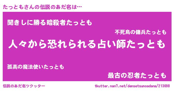 | 胡散臭い通販商品みたいなあだ名 | 『100人中100人が認めたイリジウム磁石…その名も「たっとも」』 |