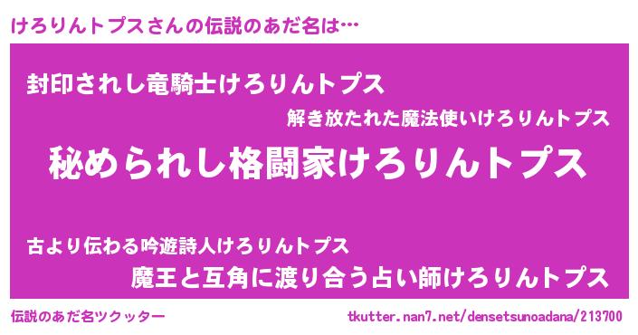 | 意味不明あだ名 | 『自称けろりんトプス』 |