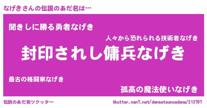 | ヒーロー風カッコイイあだ名 | 『スーパーナゲキ』『仮面ナゲダー』 |