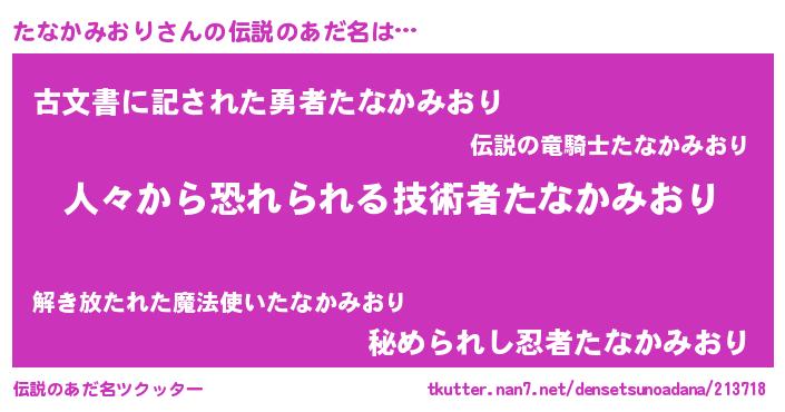 | 胡散臭い通販商品みたいなあだ名 | 『100人中100人が認めたマグネット磁石…その名も「たなかみおり」』 |