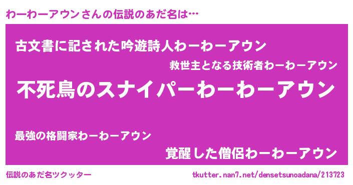 | ヒーロー風カッコイイあだ名 | 『スーパーワーワーアウン』 |