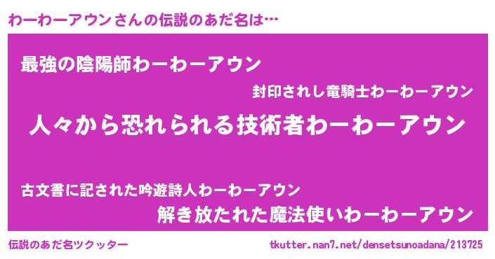 | ヒーロー風カッコイイあだ名 | 『超時空戦士ワーワーアウン』 |
