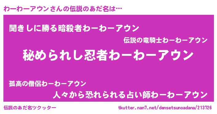| ヒーロー風カッコイイあだ名 | 『仮面ワーダー』『ネオワーワーアウン』 |