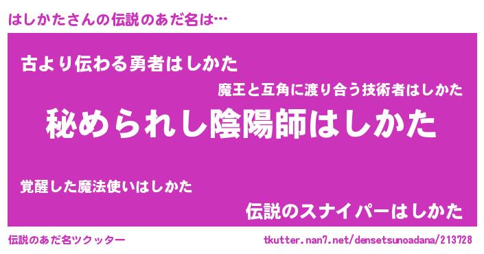 | 意味不明あだ名 | 『はしかたフォーエバー』 |