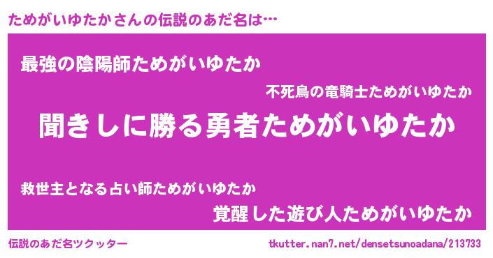 | 意味不明あだ名 | 『永久保存ためがいゆたか』 |