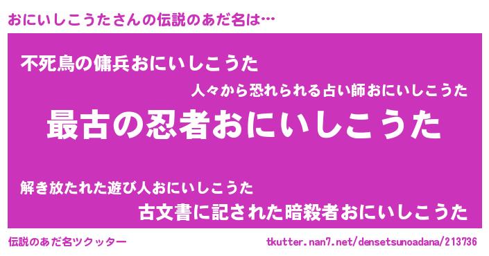 | 意味不明あだ名 | 『おにいしこうたフォーエバー』 |