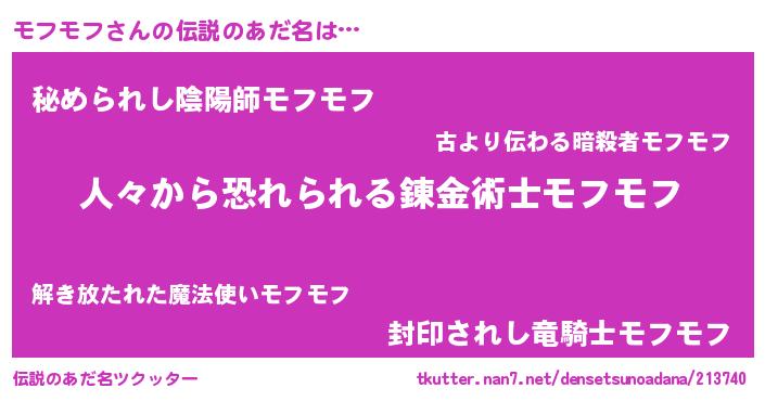 | ポケモン風あだ名 | 『モックウザ』『モフモダネ』 |