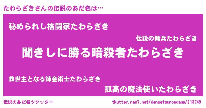 | 意味不明あだ名 | 『自称たわらざき』『永久保存たわらざき』 |