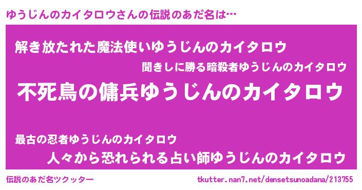 | ヒーロー風カッコイイあだ名 | 『スーパーユウジンノカイタロウ』 |