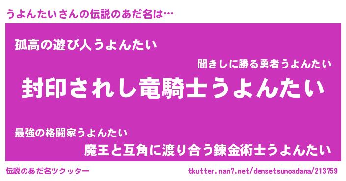 | 胡散臭い通販商品みたいなあだ名 | 『億万長者になれるブレスレット…その名も「うよんたい」』 |