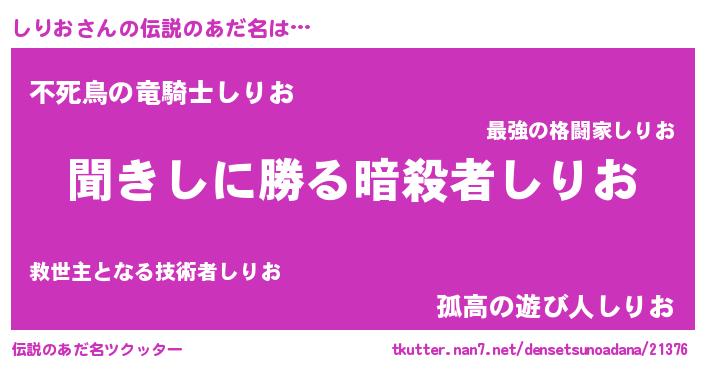 | 男性向けラノベタイトル風あだ名 | 『シリオスレイヤー』『しりおの憂鬱』 |