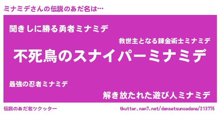 | 胡散臭い通販商品みたいなあだ名 | 『モテモテ間違いなし霊験あらたかなお札…その名も「ミナミデ」』 |
