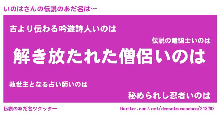 | ヒーロー風カッコイイあだ名 | 『幻影騎士イノ』『ウルトラ戦士イノハ』 |