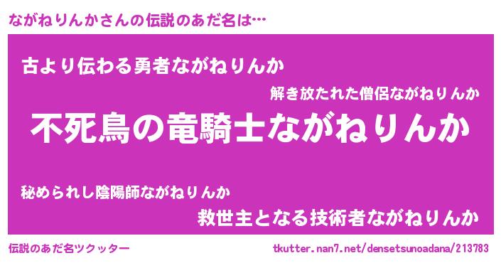 | 女子向けラノベタイトル風あだ名 | 『ながねりんか姫と円卓の騎士』 |